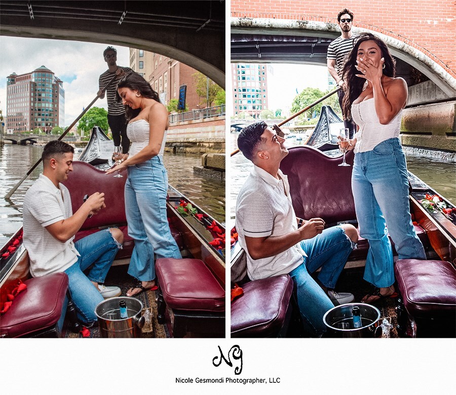 Gerard contacted me three and a half weeks before he planned to propose to his girlfriend, Gianna. She recently graduated with her master’s degree, and he was planning a trip to Rhode Island to celebrate. He said Gianna always dreamed about getting engaged in Italy, but logistically a European vacation wasn’t feasible, and he went looking for other options. After a bit of internet sleuthing, Gerard saw the gondolas in Providence and knew instantly they’d be the next best way to fulfill her fantasy of an Italian proposal – how thoughtful! An added bonus? Providence even has some slamming good Italian food!
